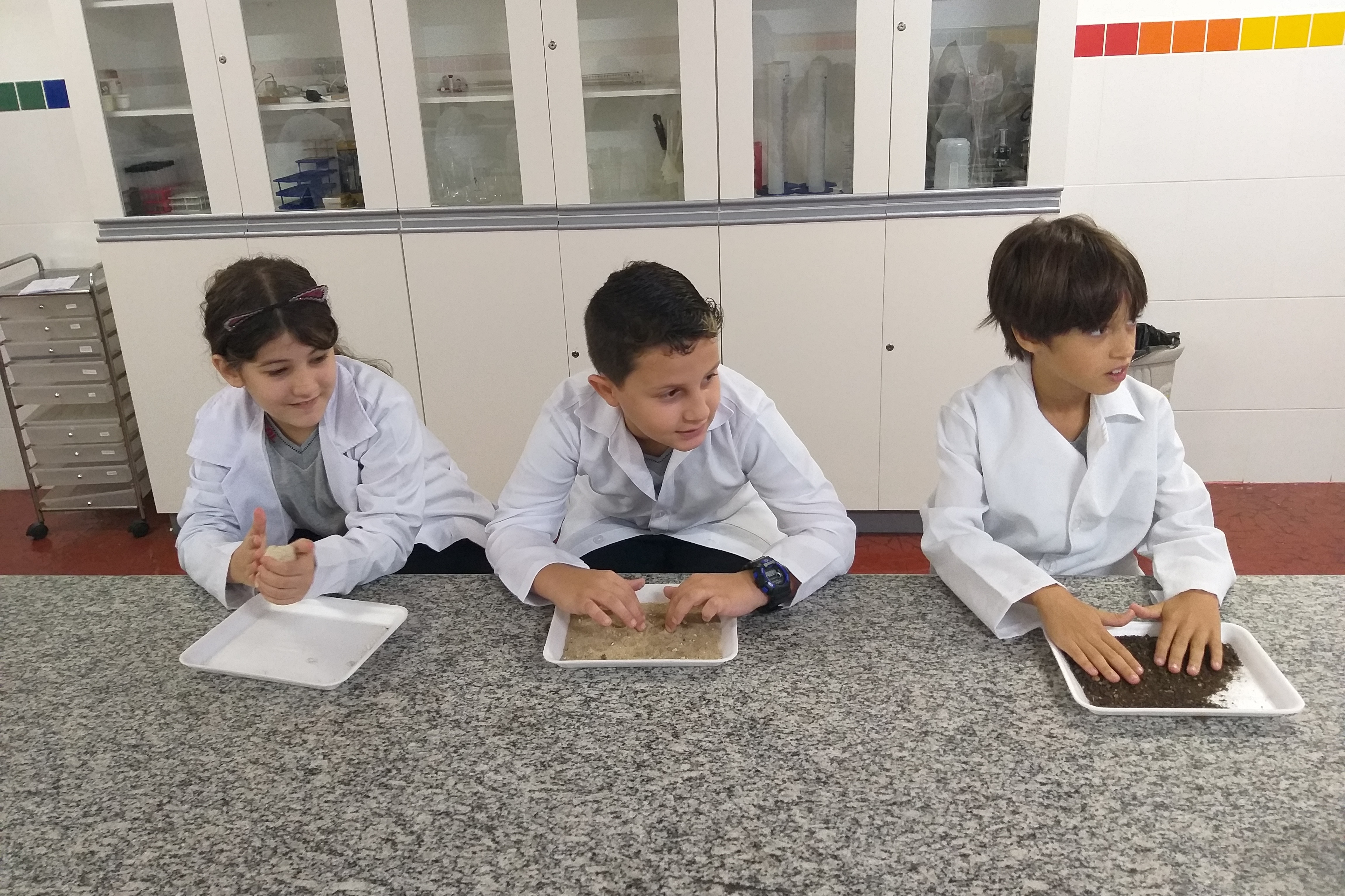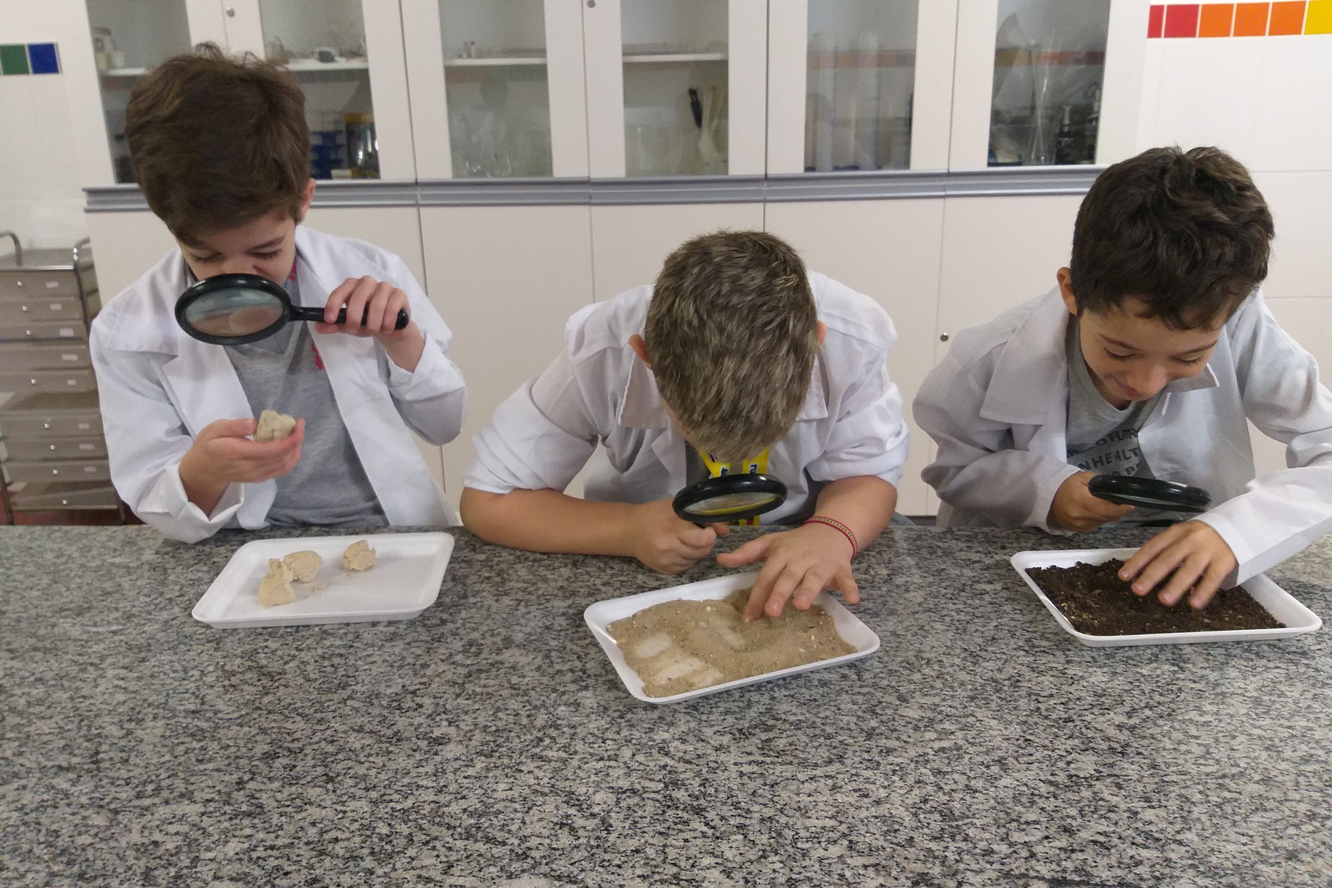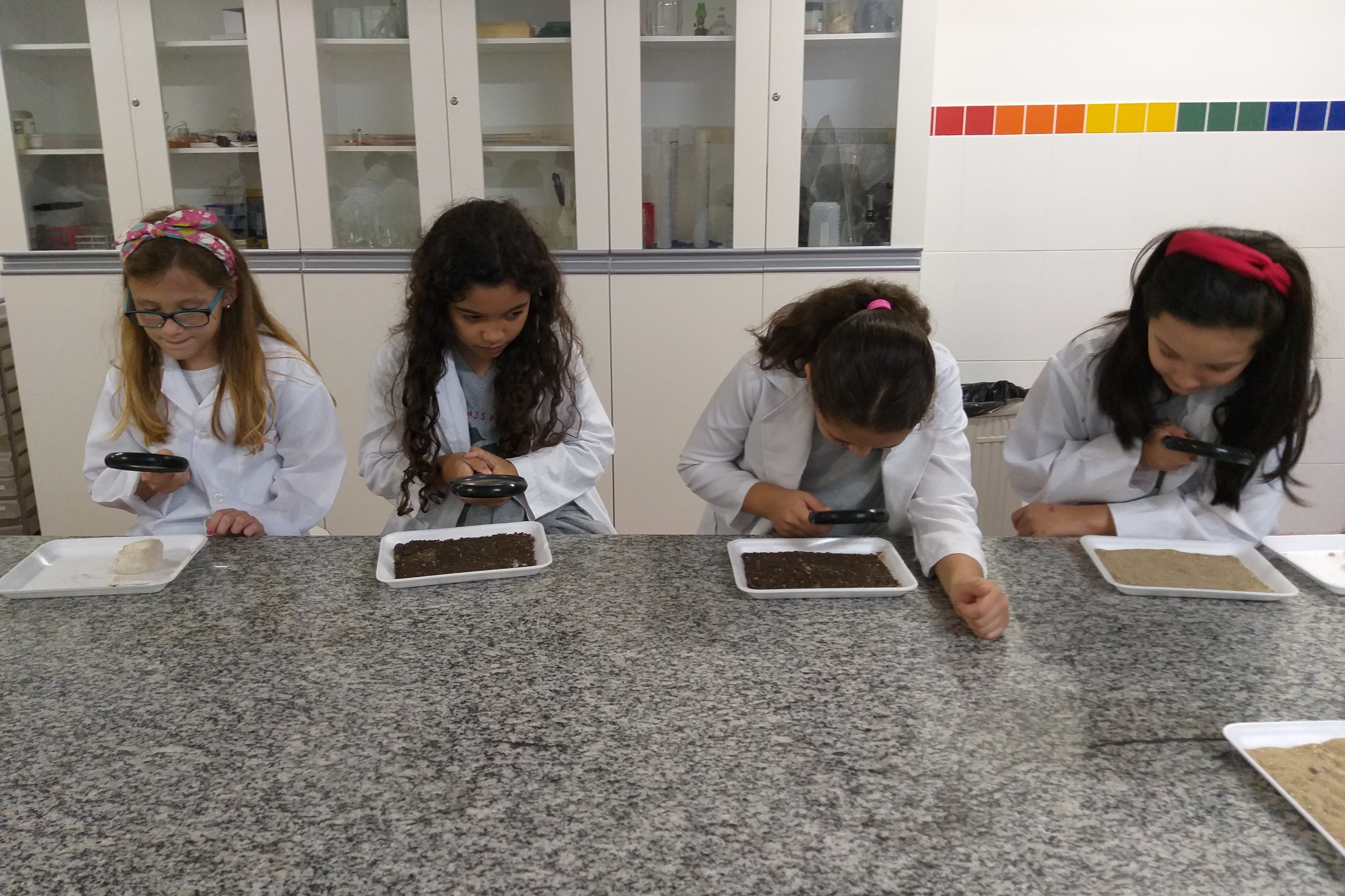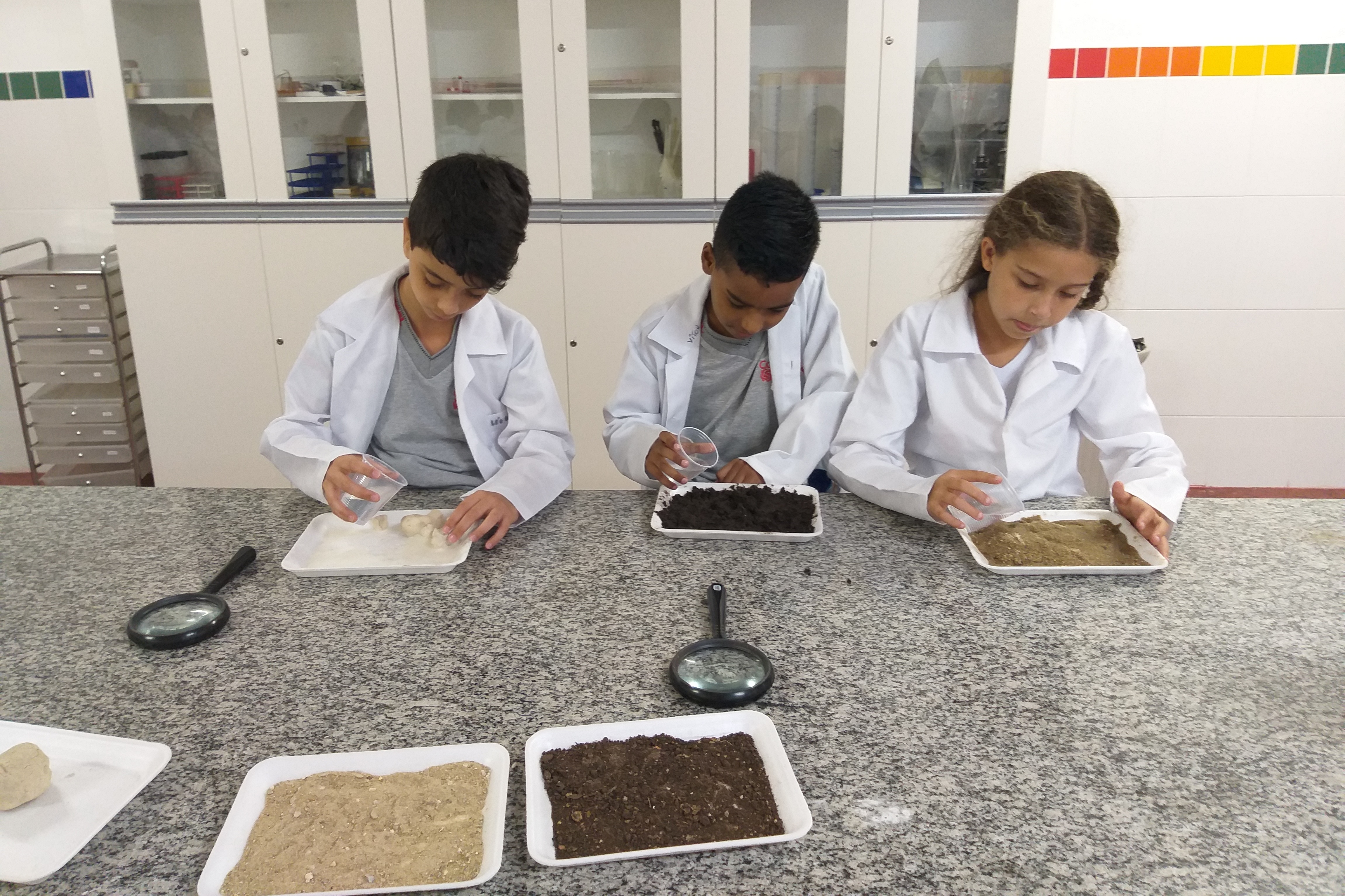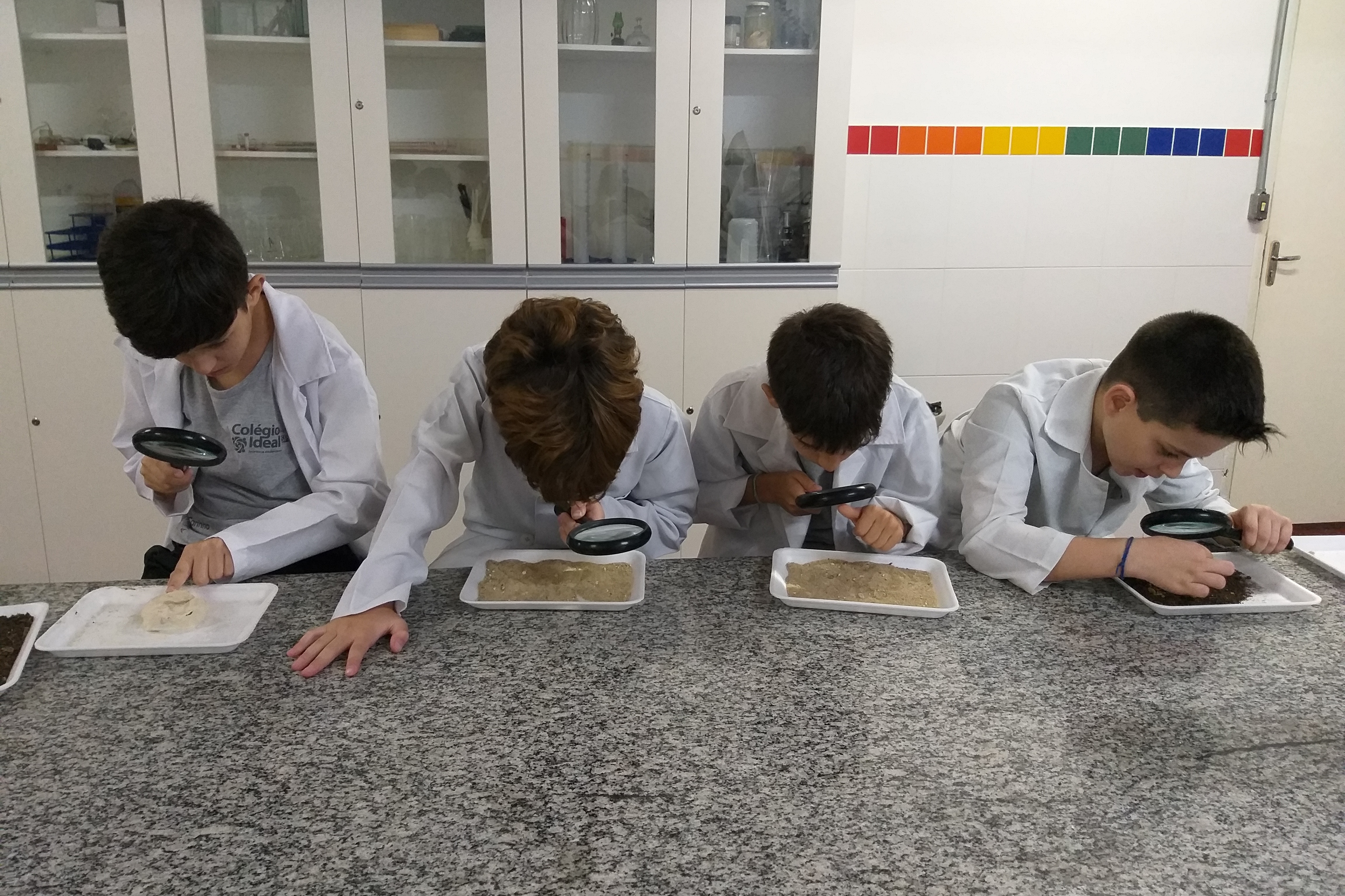 Com suas lupas, os pequenos exploradores dos 4° anos, do Colégio Ideal SP, estudaram os tipos de solo. Eles puderam observar a cor, a textura, e a composição de cada solo. A  atividade também estimulou a discussão entre os alunos. Além disso, trabalharam juntos nos experimentos e observações, trocando opiniões.