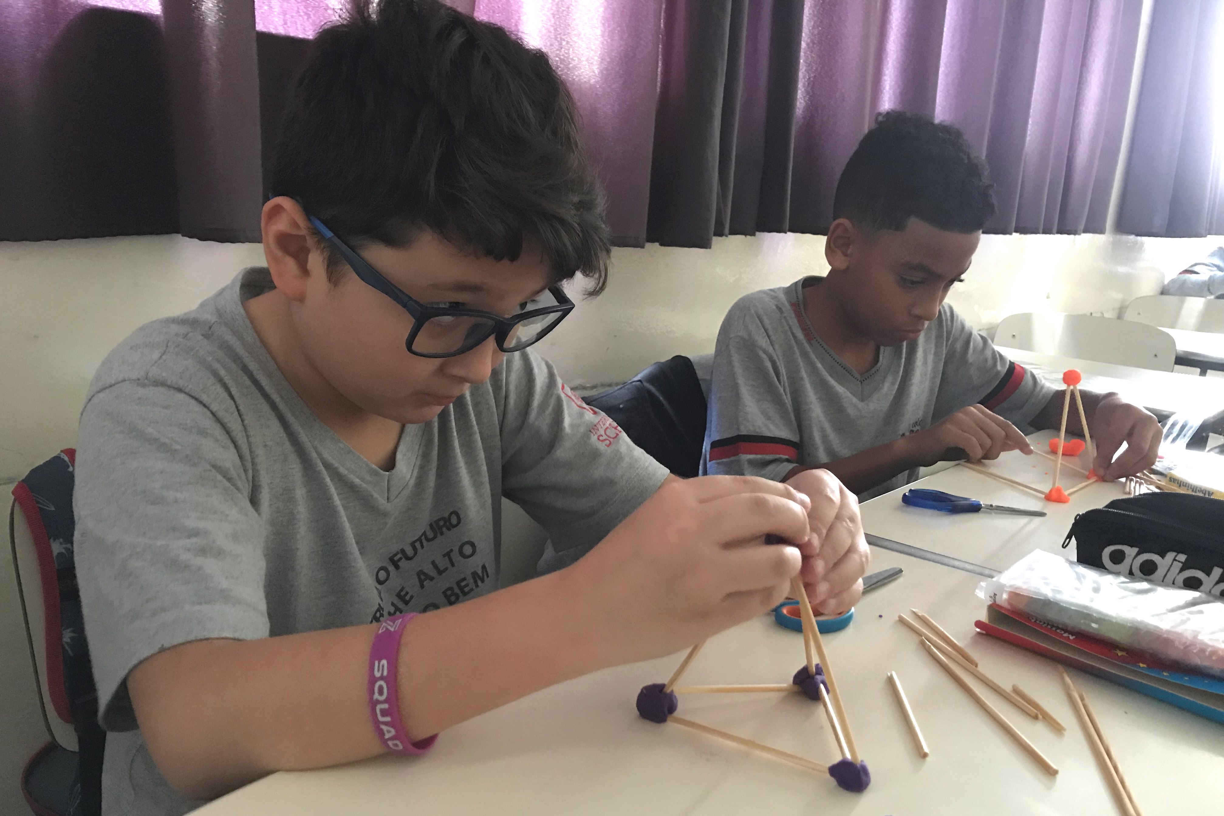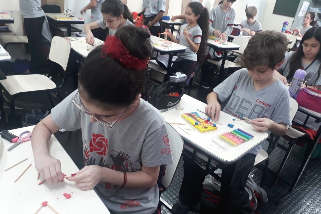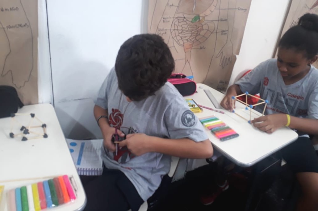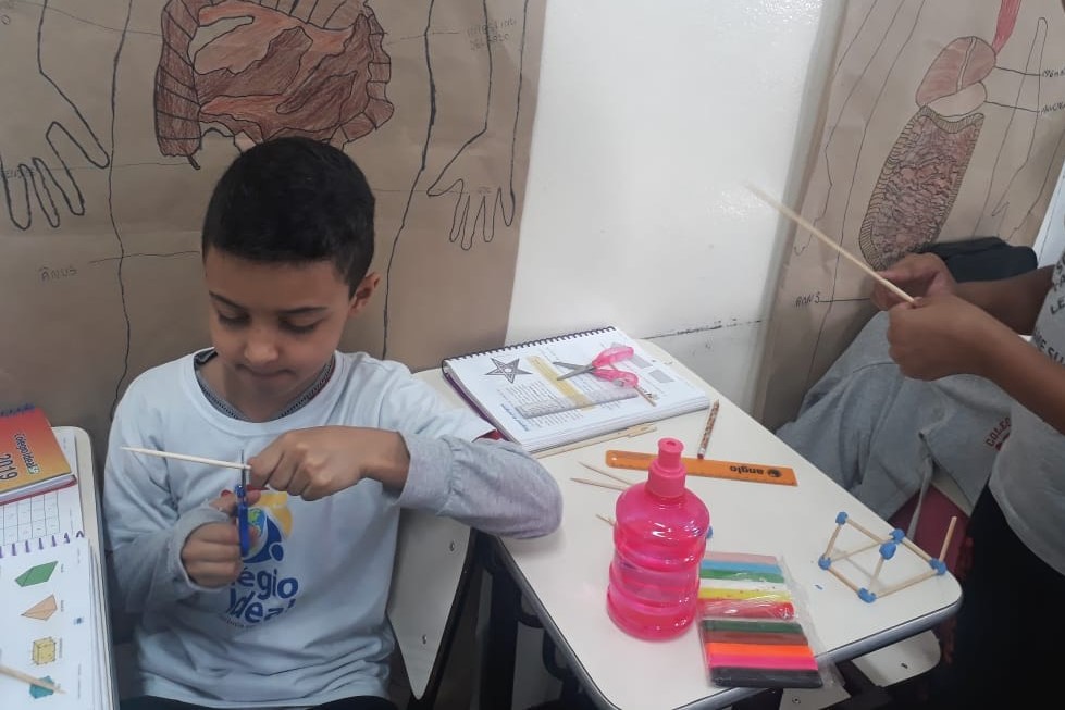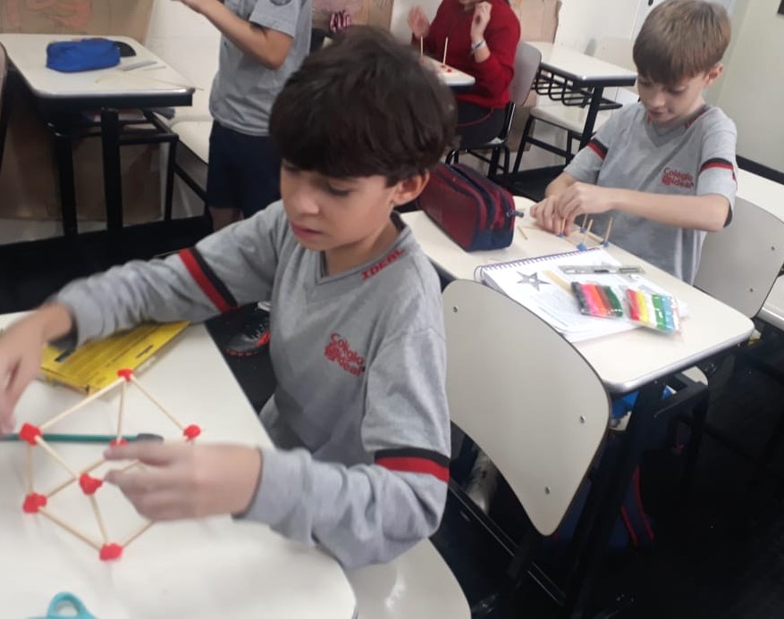 Na matemática, a Geometria espacial é responsável por estudar as figuras que possuem mais de duas dimensões. Para ampliar o aprendizado nessa área, os alunos dos 5ºs anos A e B participaram de uma atividade na qual produziram sólidos geométricos. Confira as fotos!