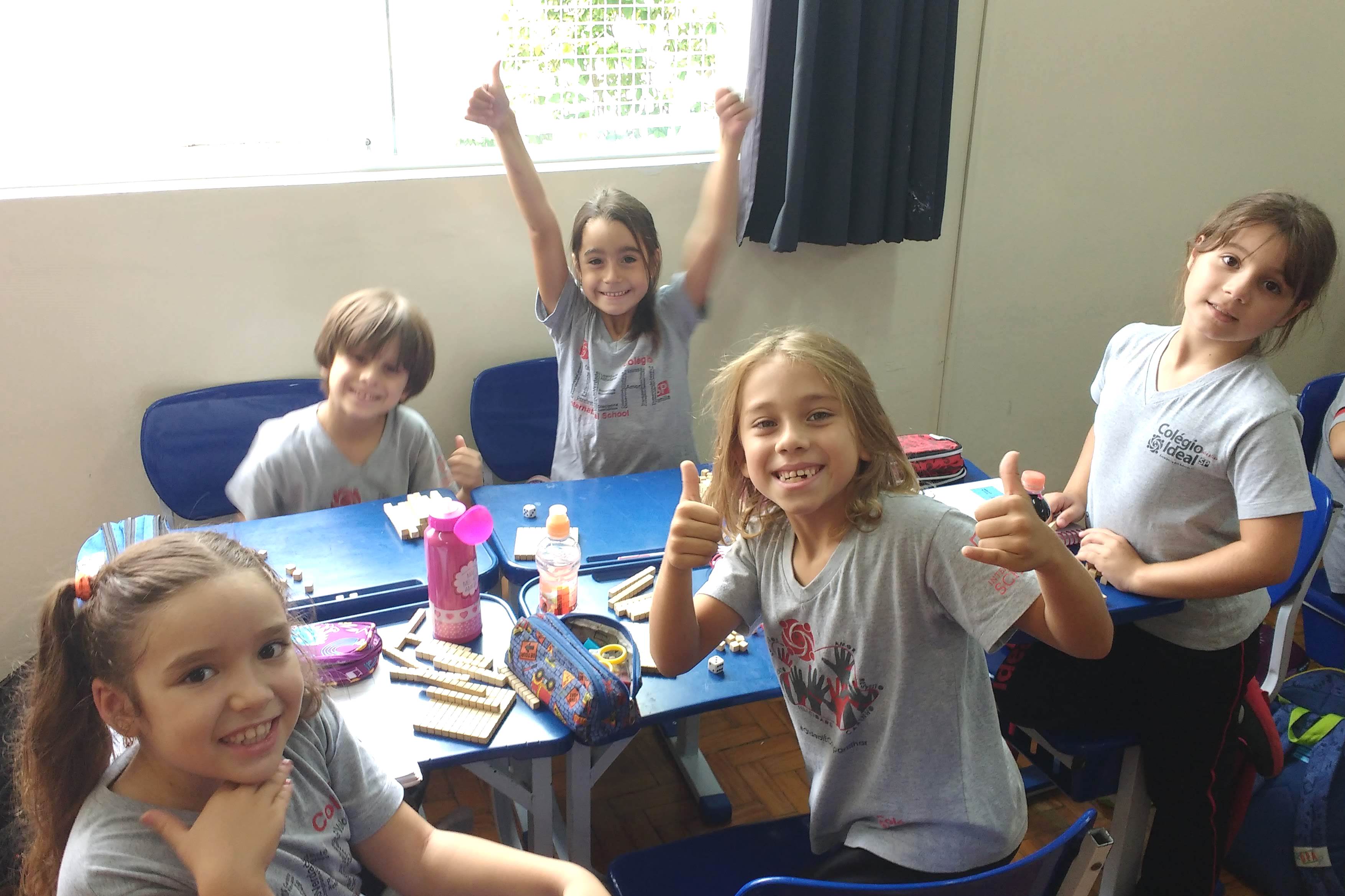 1ºA e 1ºC fazem atividade de alfabetização com letras móveis