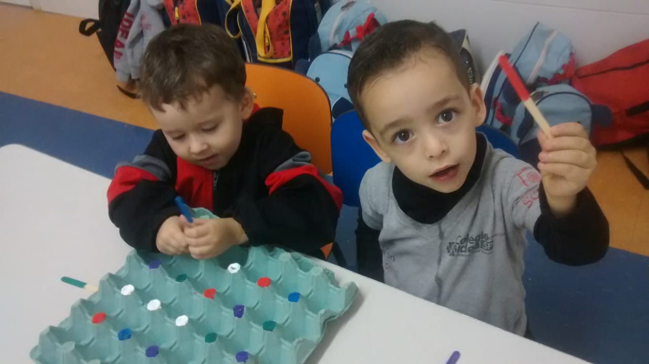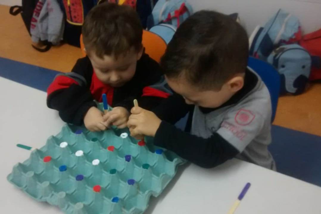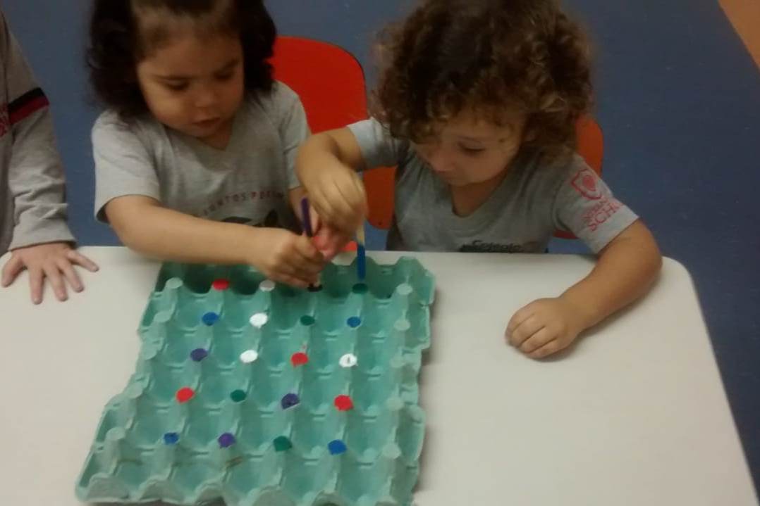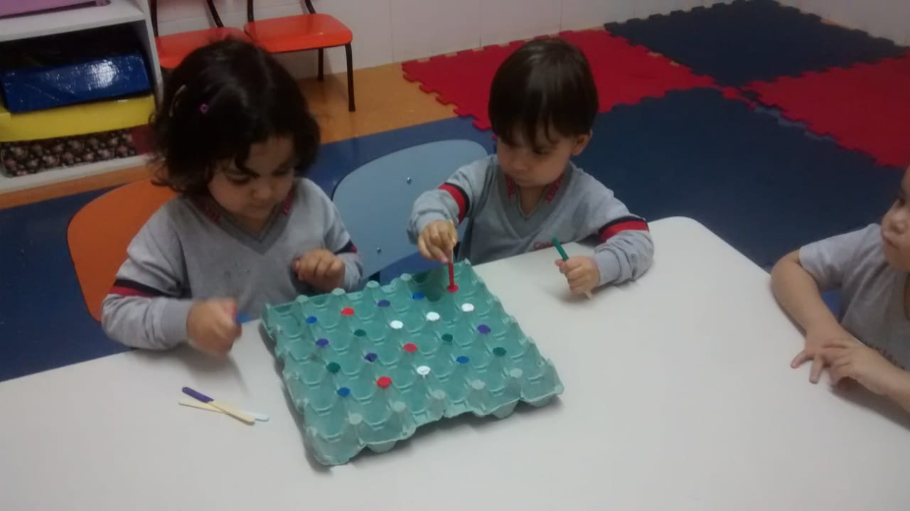 Os alunos brincaram com o jogo dos palitos e da caixa de ovo.
