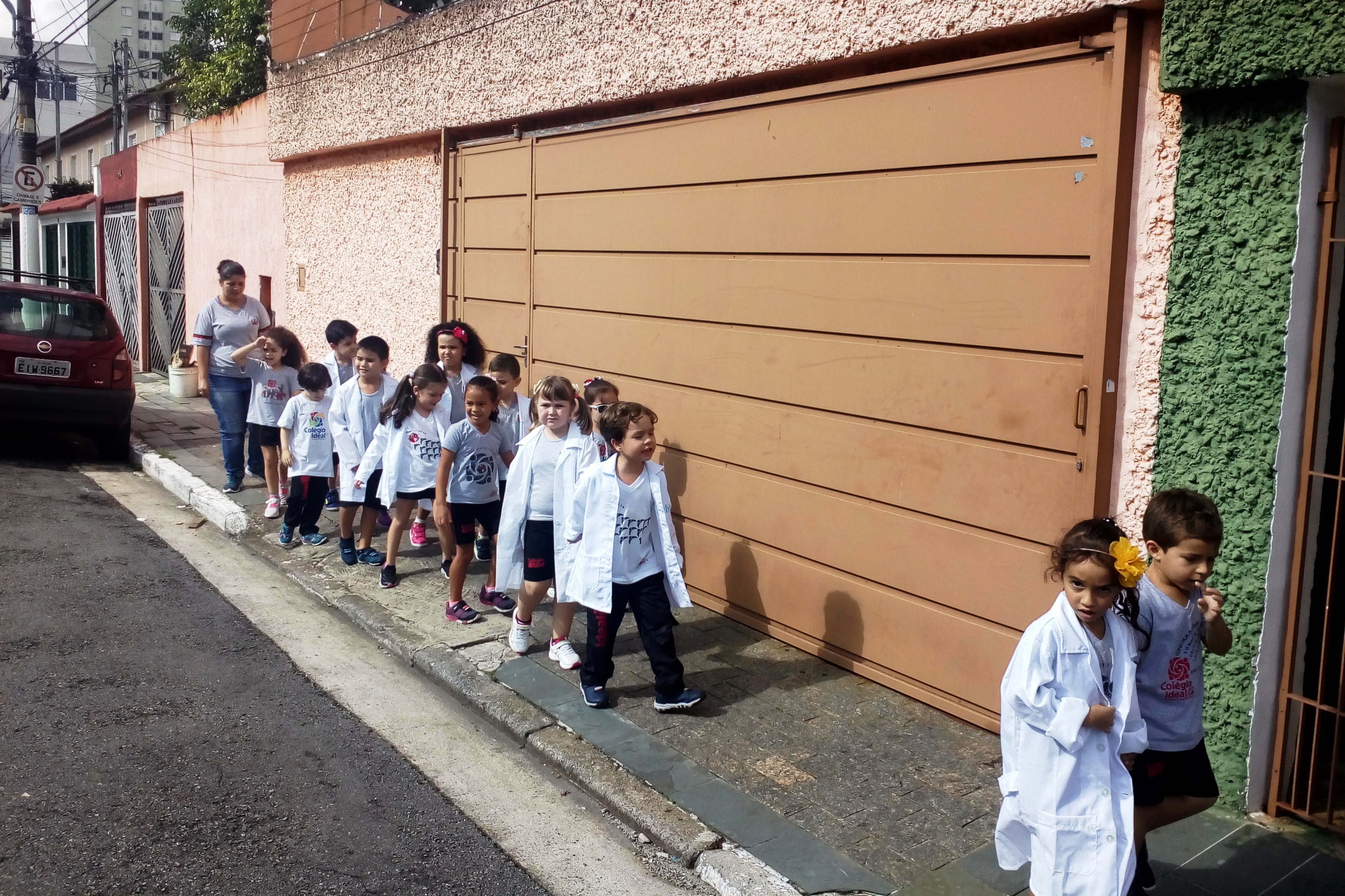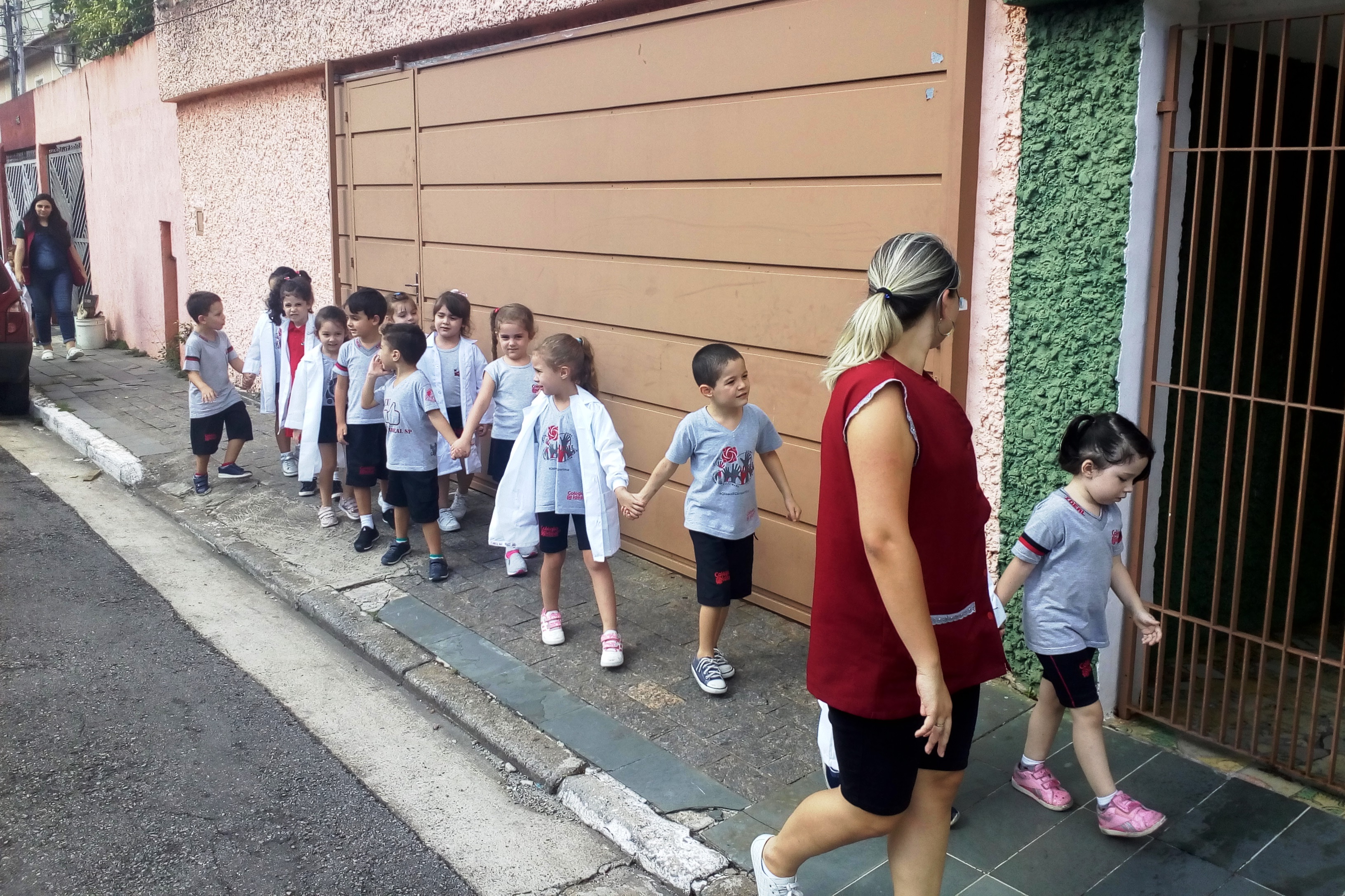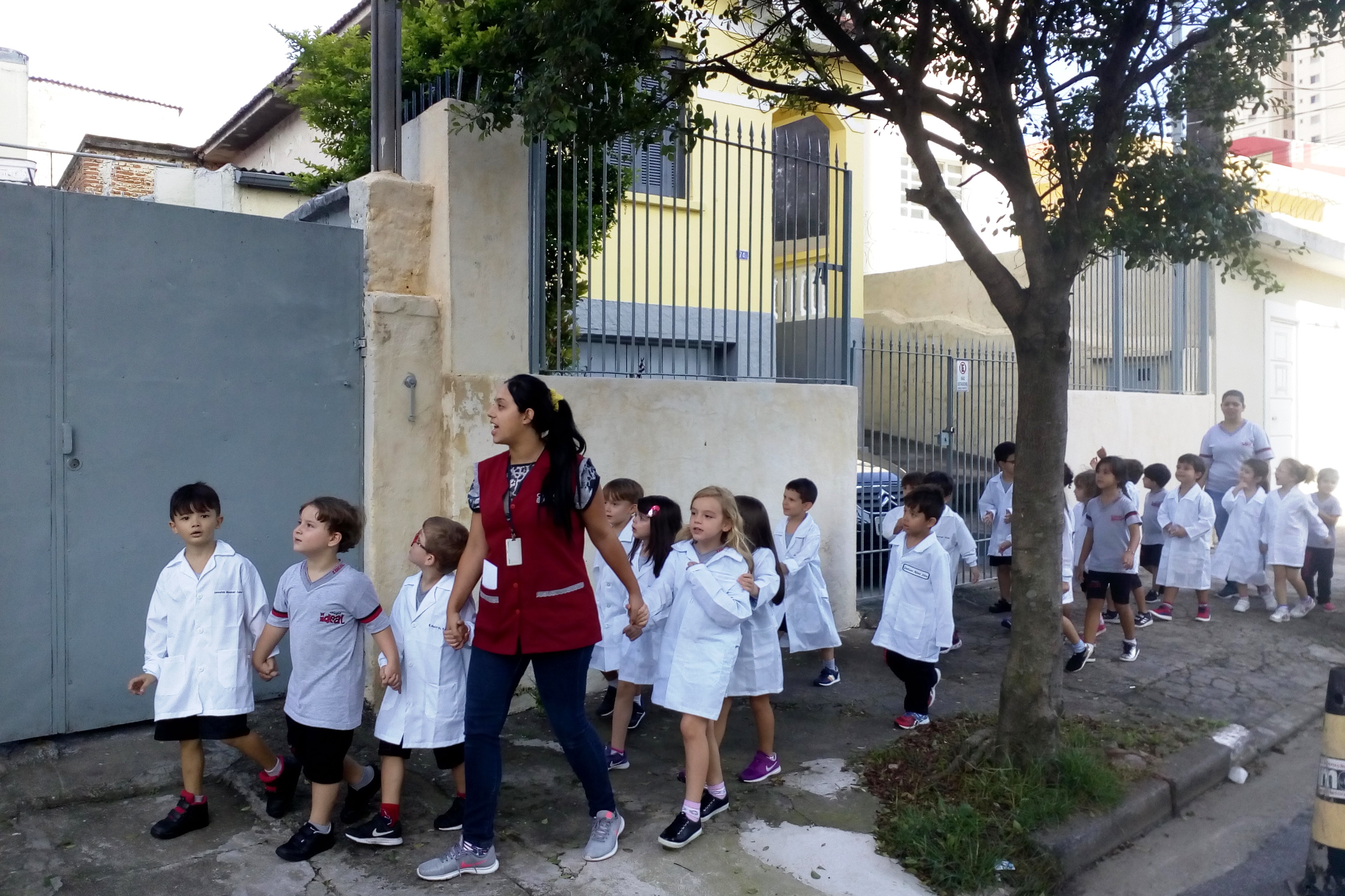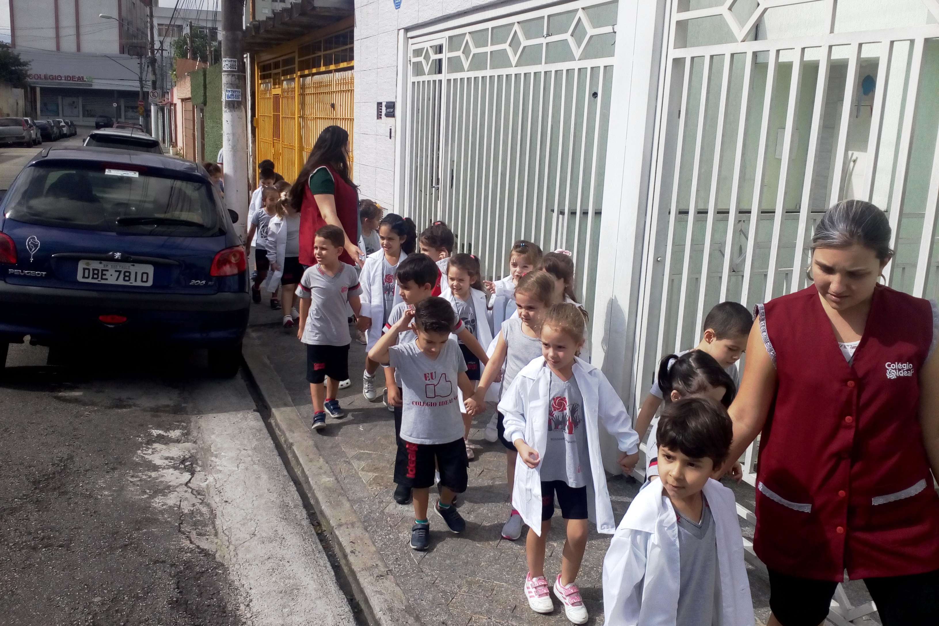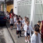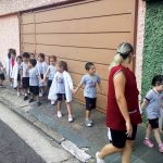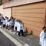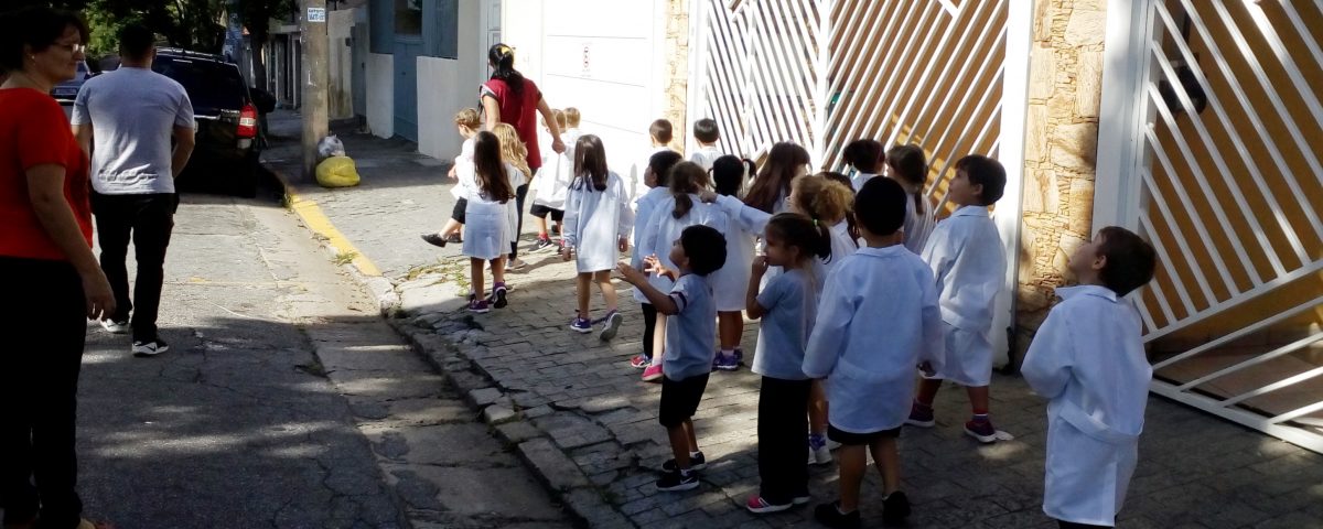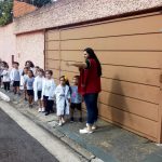 Os alunos do Infantil III passearam pelas ruas próximas ao colégio para vivenciar o conteúdo ensinado em sala de aula sobre os bairros, ruas, casas, placas, mosaicos, entre outros. Foi uma experiência diferente e divertida para as crianças, que puderam se familiarizar com esses elementos abordados na apostila de forma prática.