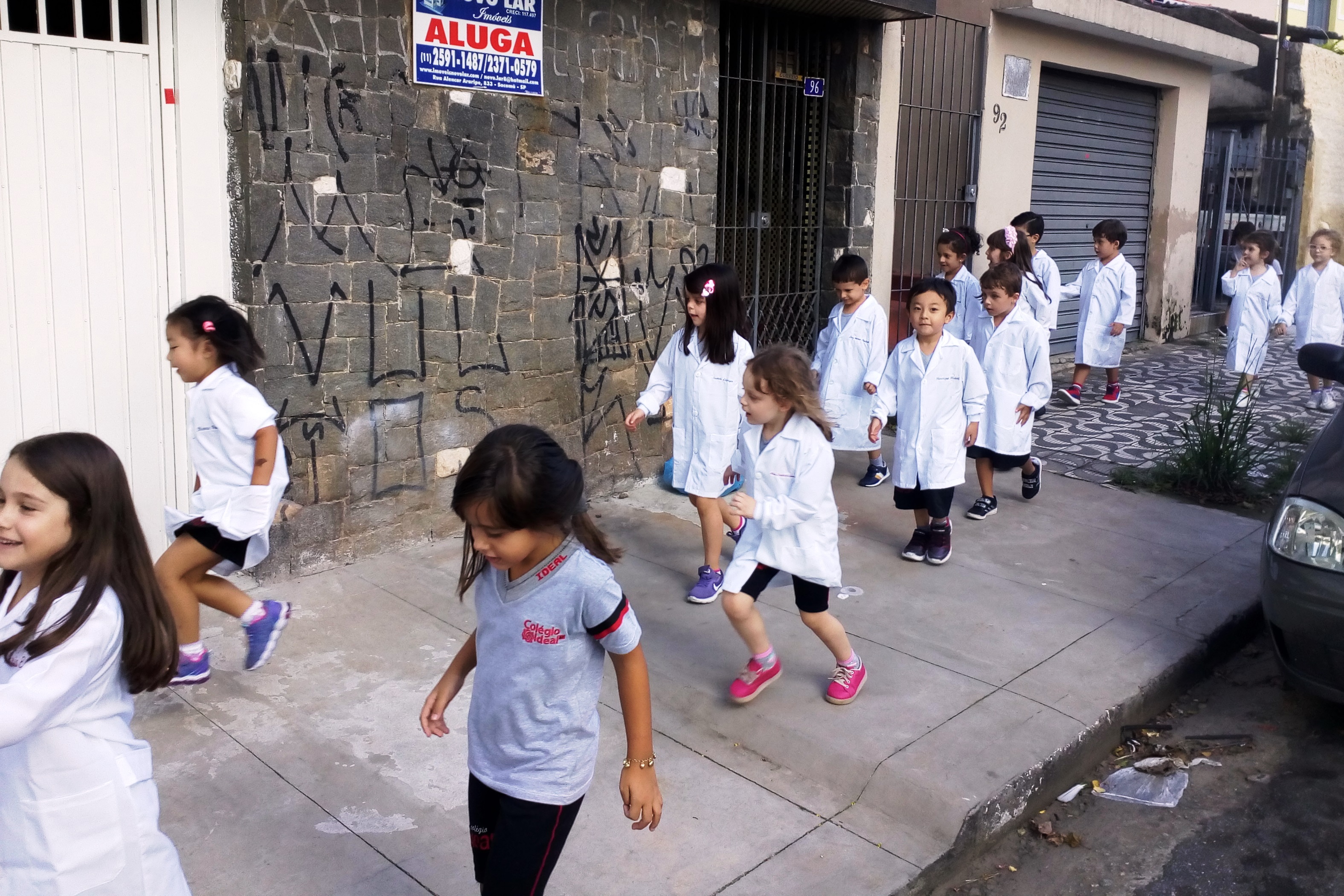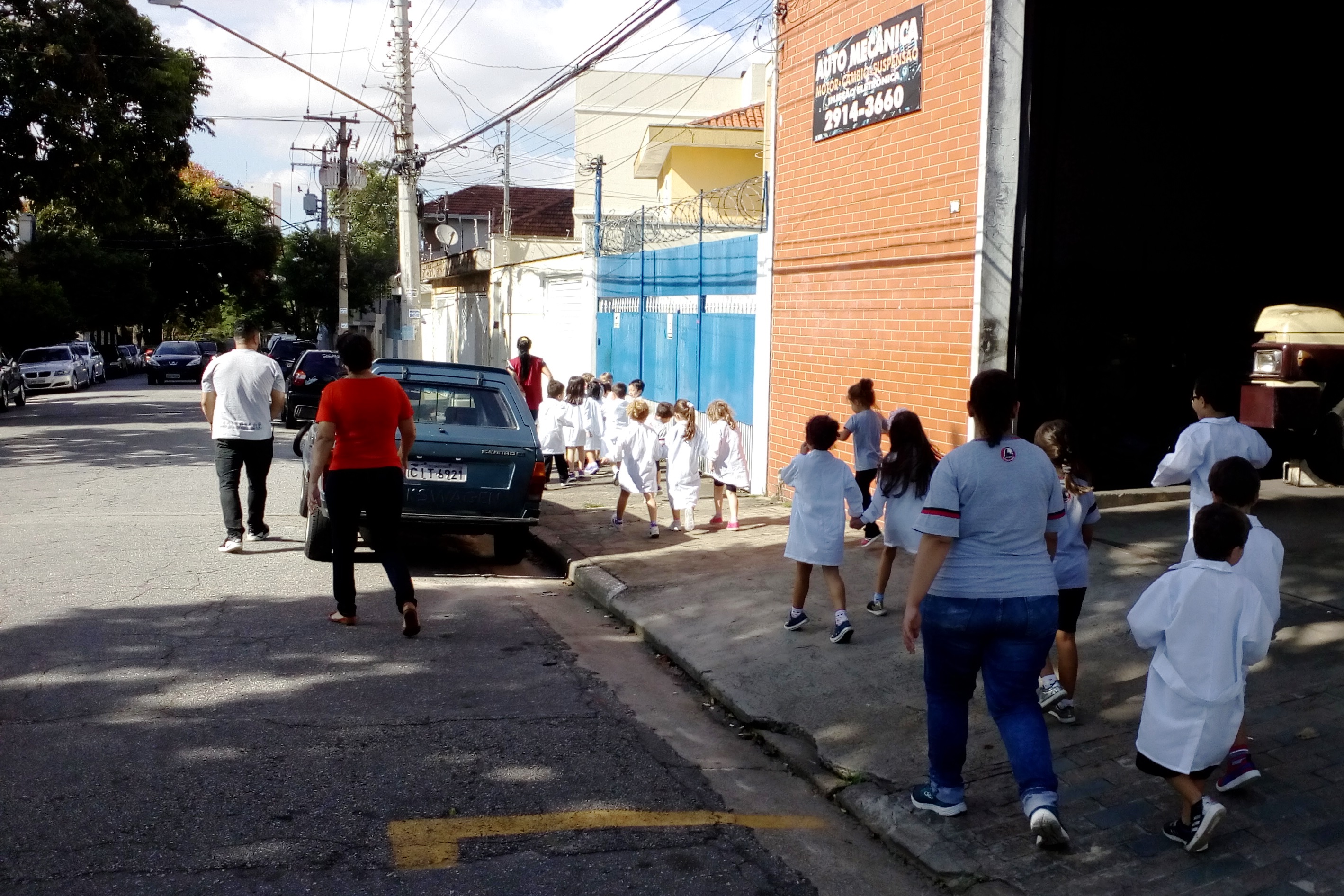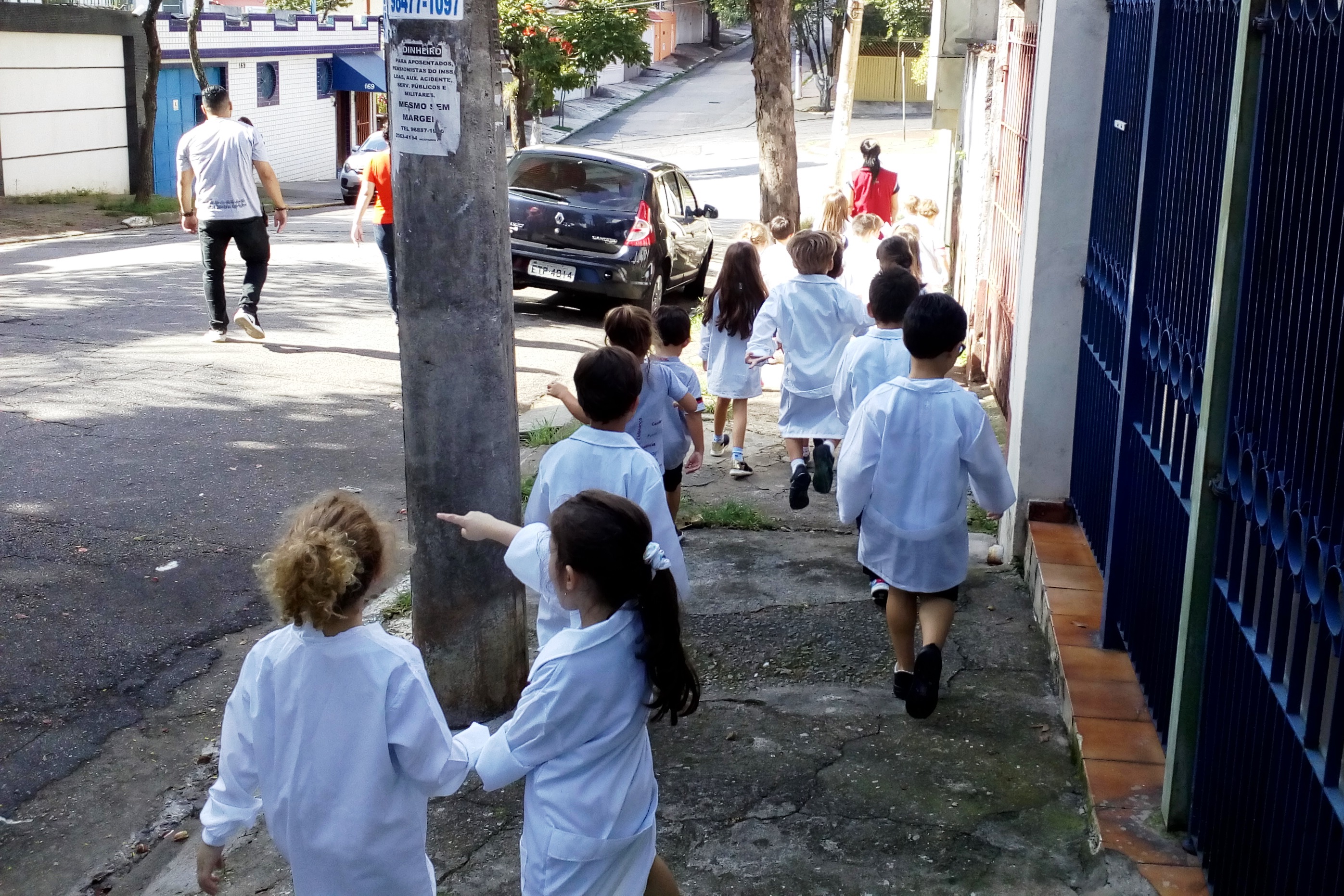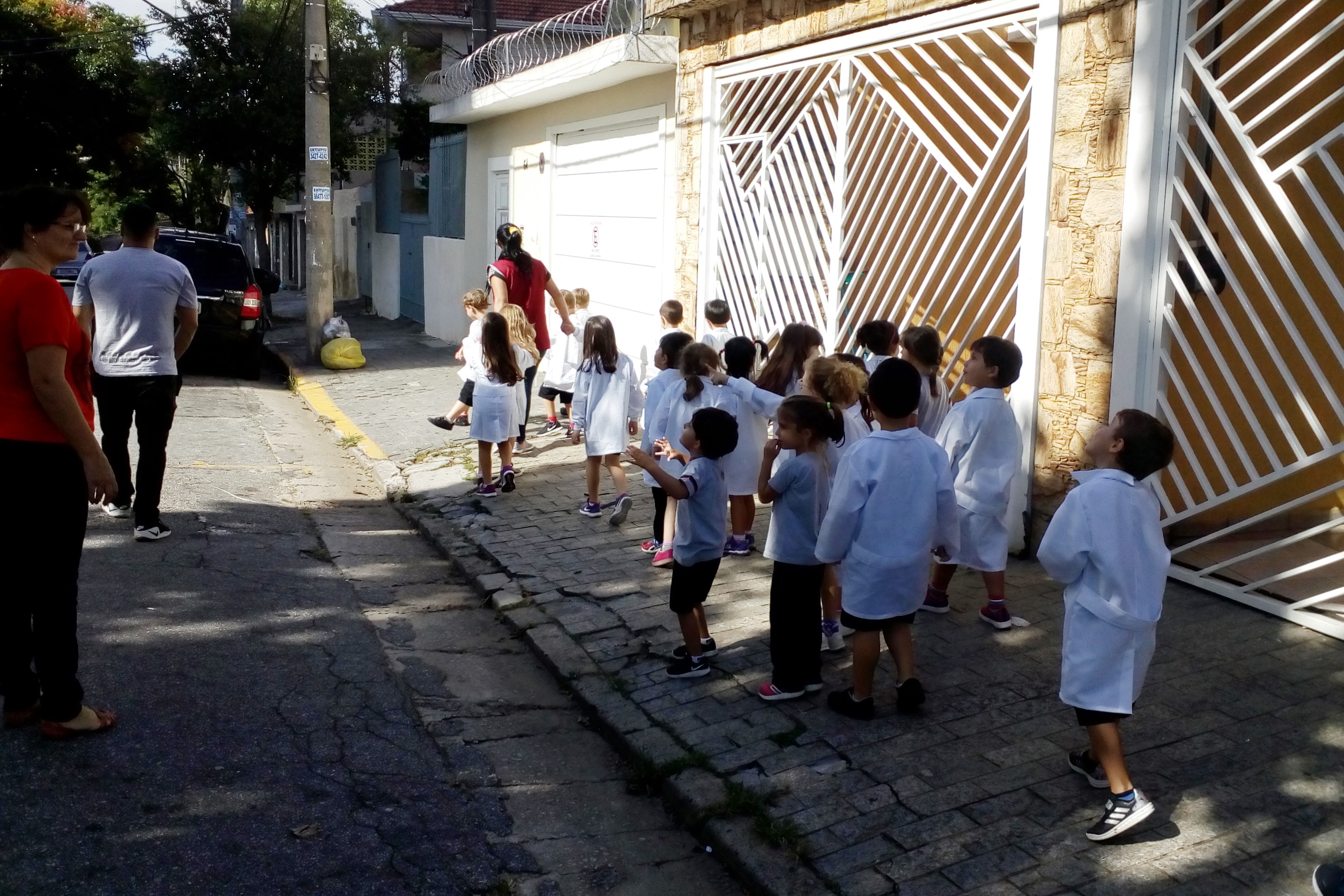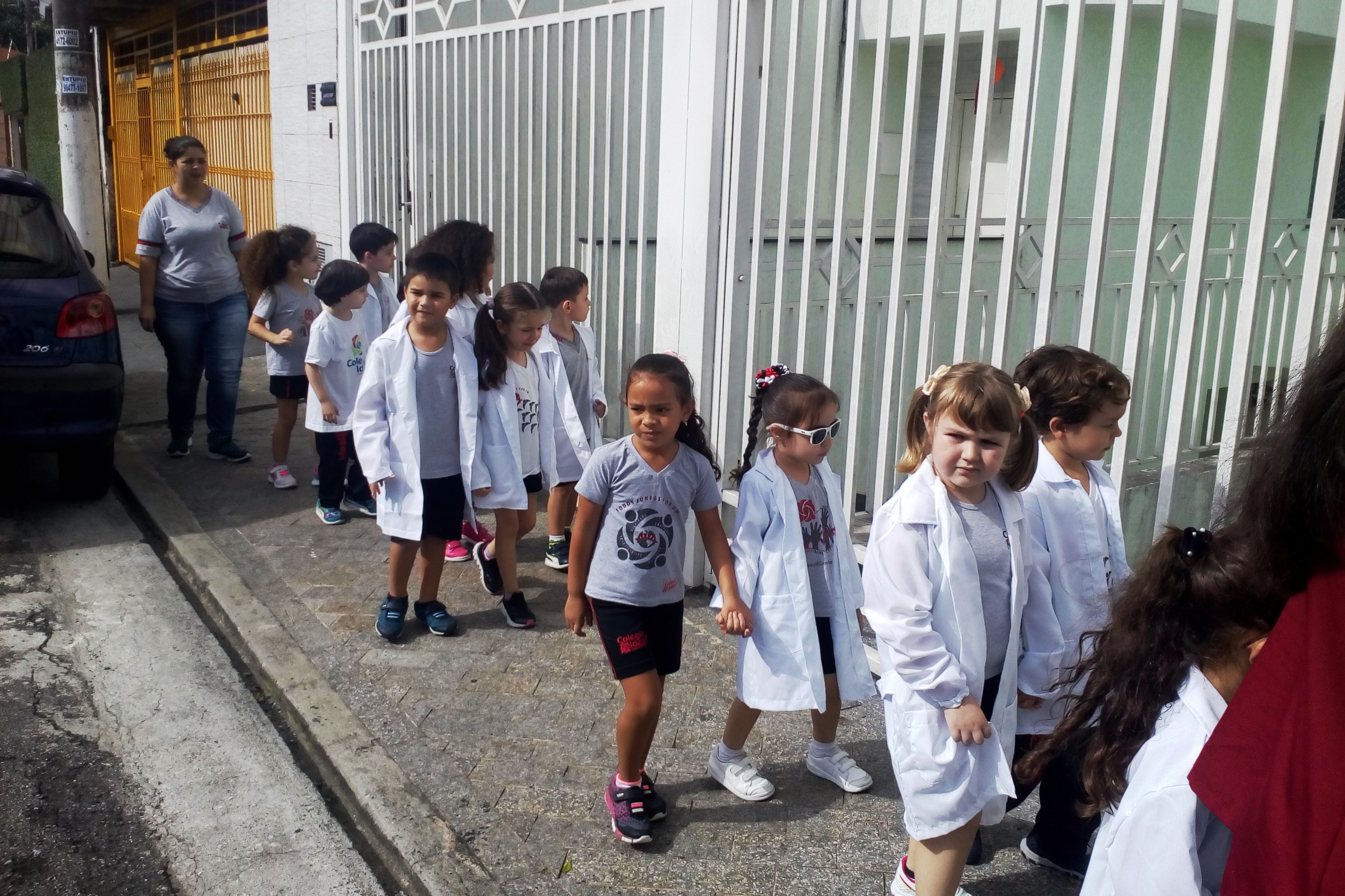 Os alunos do Infantil III passearam pelas ruas próximas ao colégio para vivenciar o conteúdo ensinado em sala de aula sobre os bairros, ruas, casas, placas, mosaicos, entre outros. Foi uma experiência diferente e divertida para as crianças, que puderam se familiarizar com esses elementos abordados na apostila de forma prática.