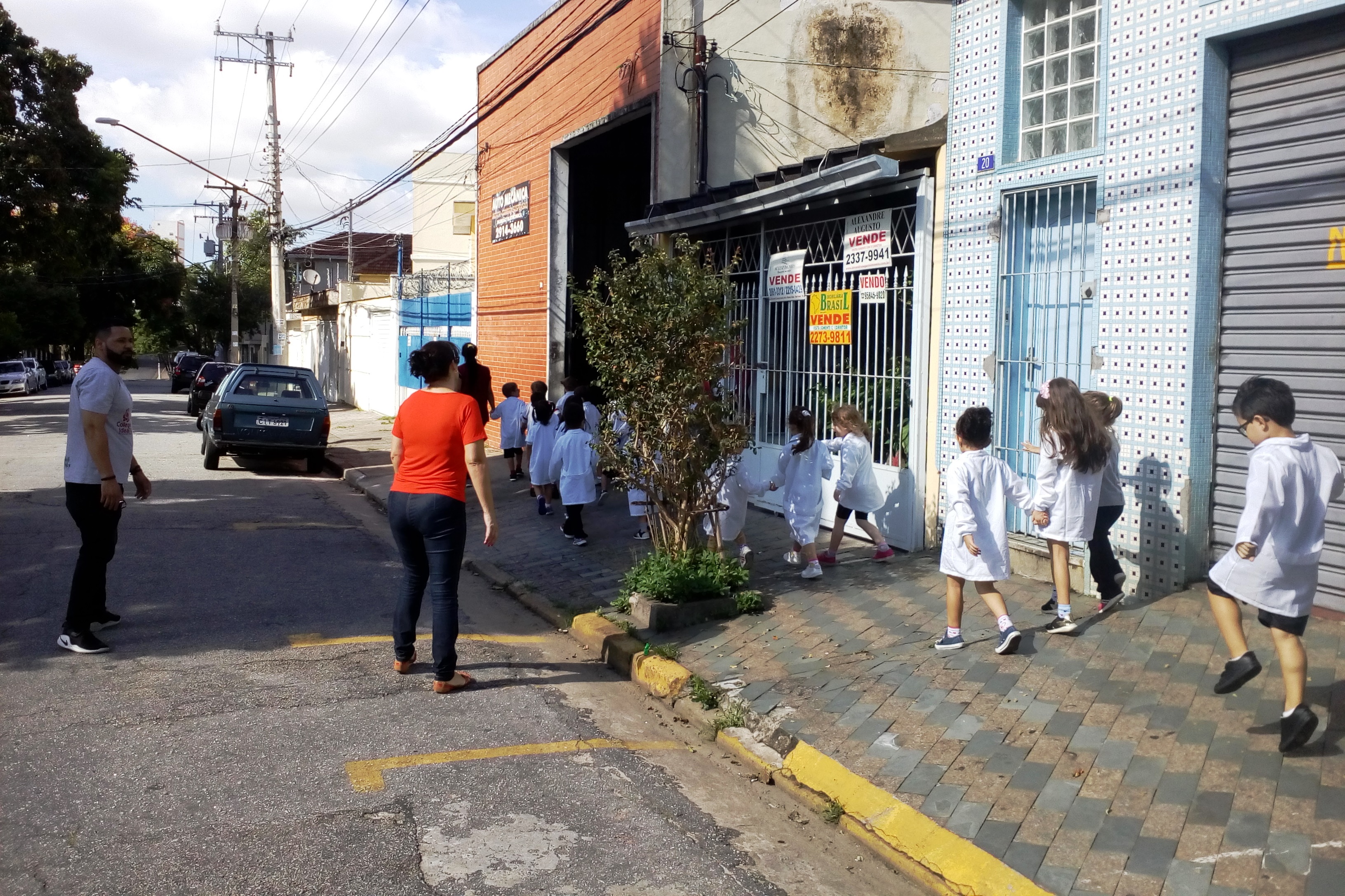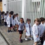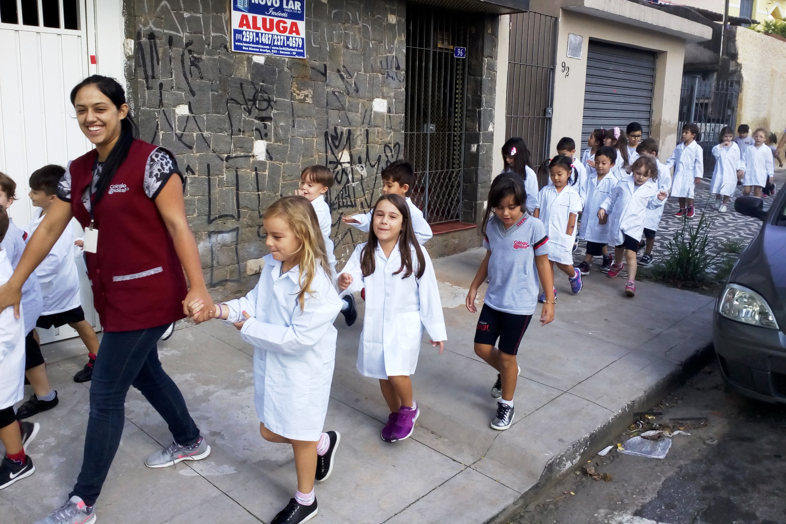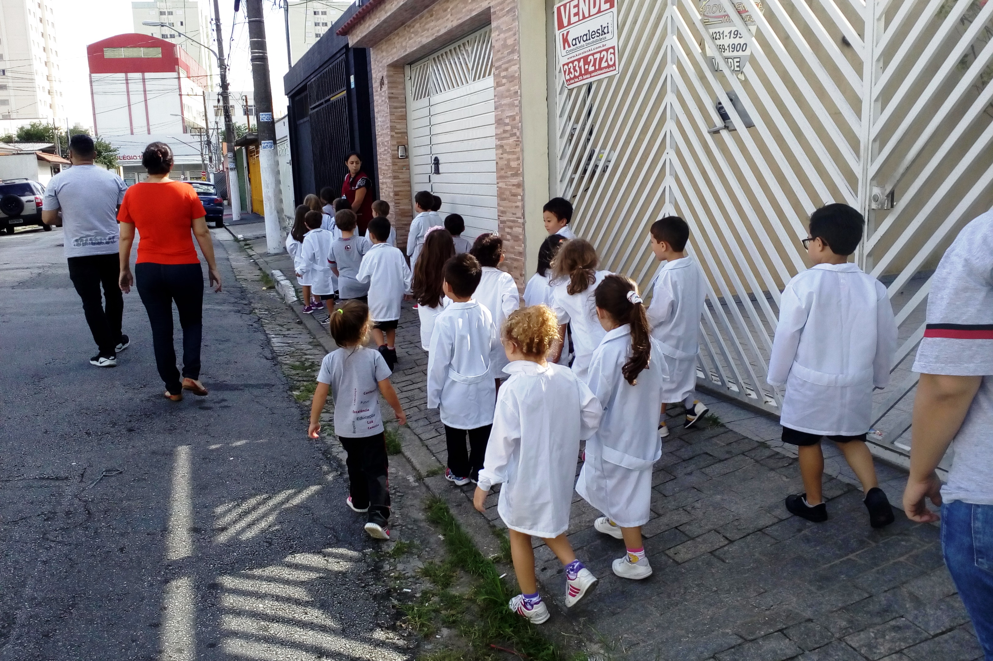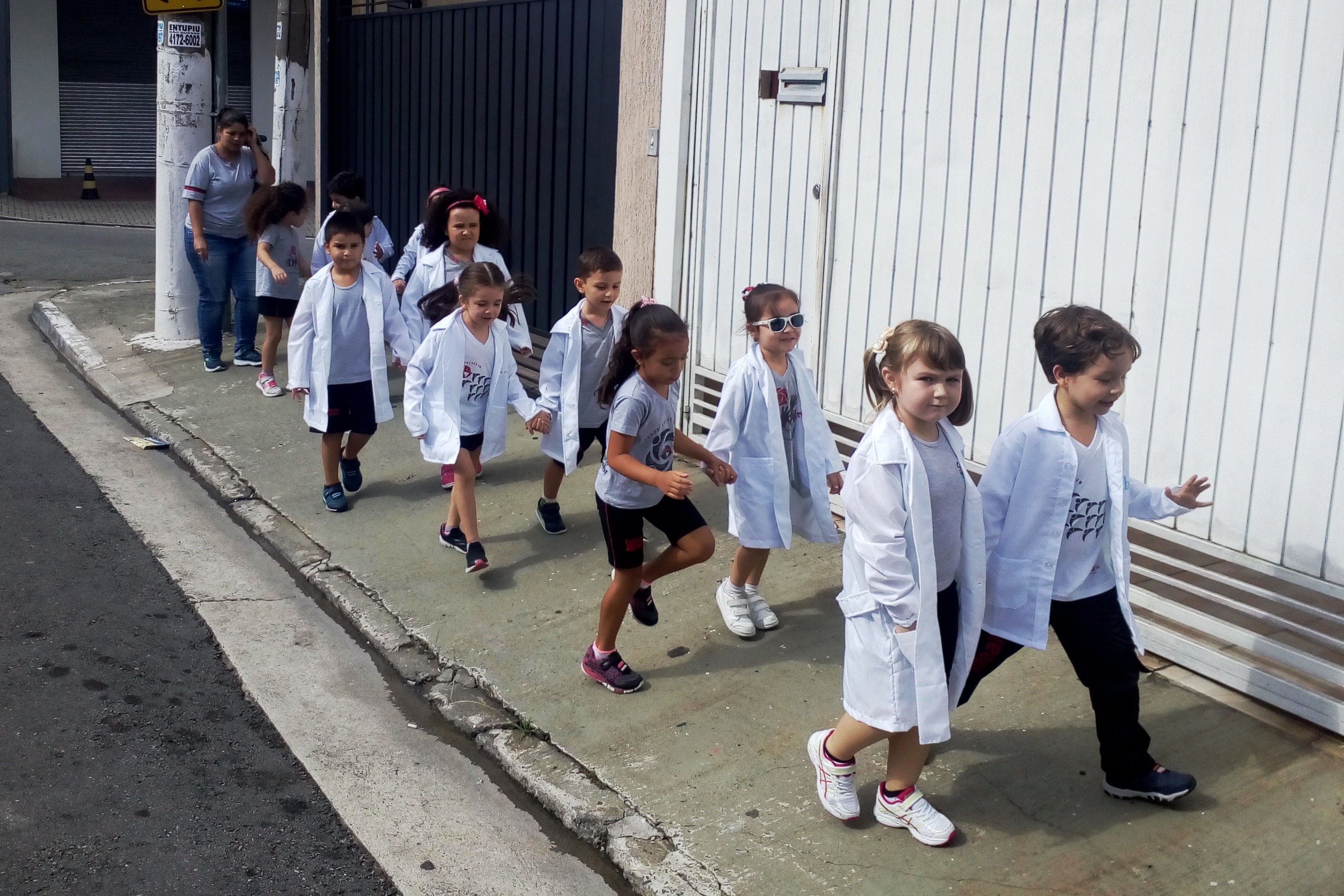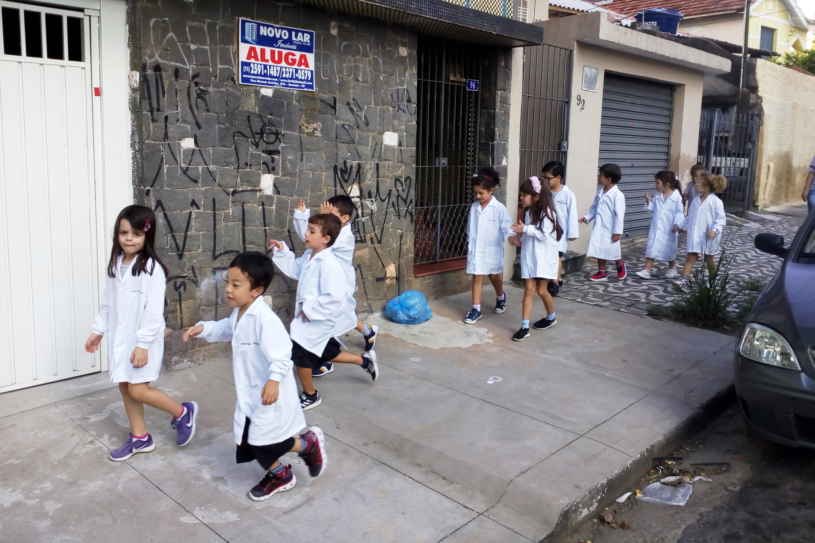 Os alunos do Infantil III passearam pelas ruas próximas ao colégio para vivenciar o conteúdo ensinado em sala de aula sobre os bairros, ruas, casas, placas, mosaicos, entre outros. Foi uma experiência diferente e divertida para as crianças, que puderam se familiarizar com esses elementos abordados na apostila de forma prática.