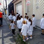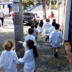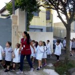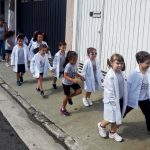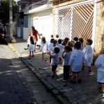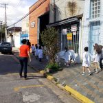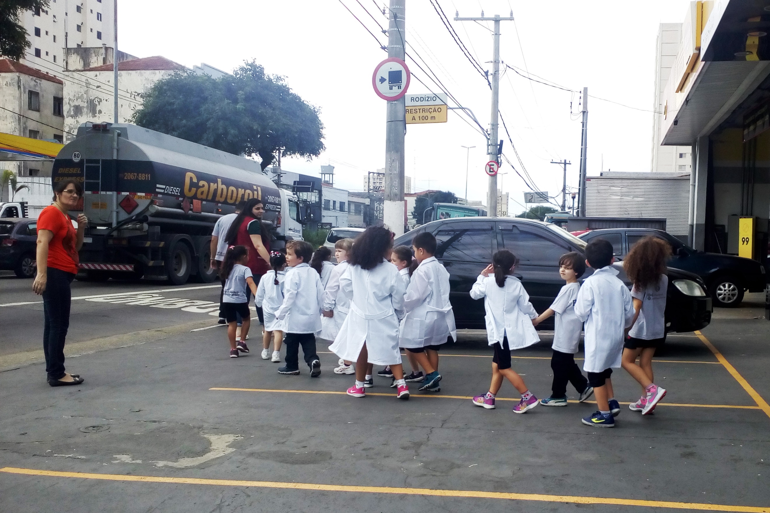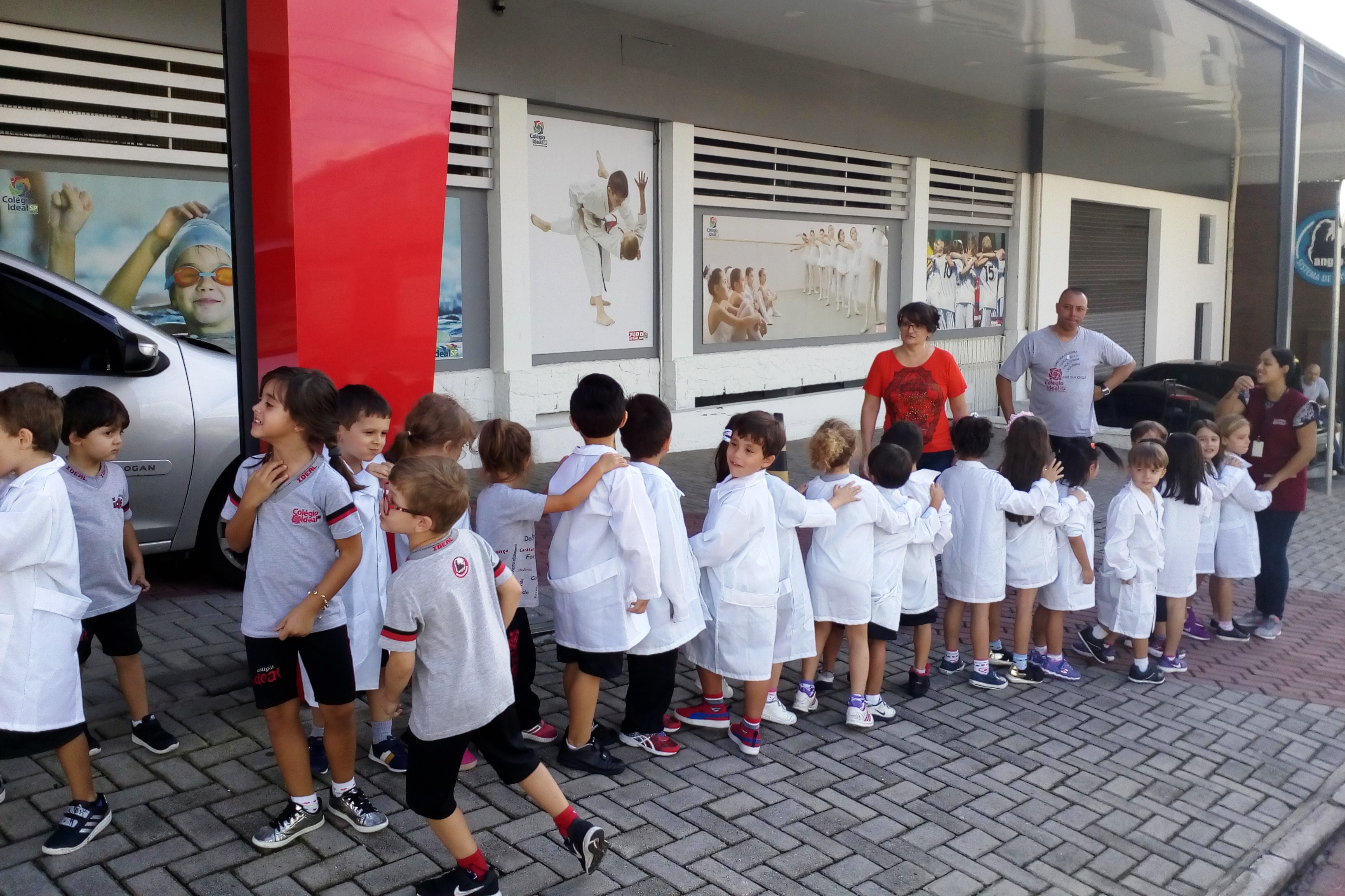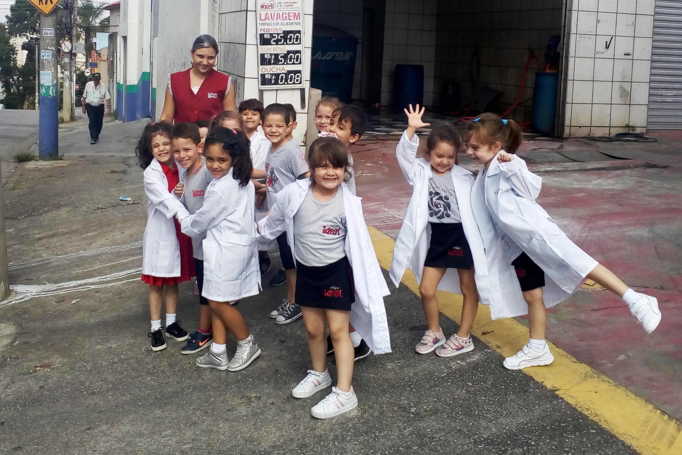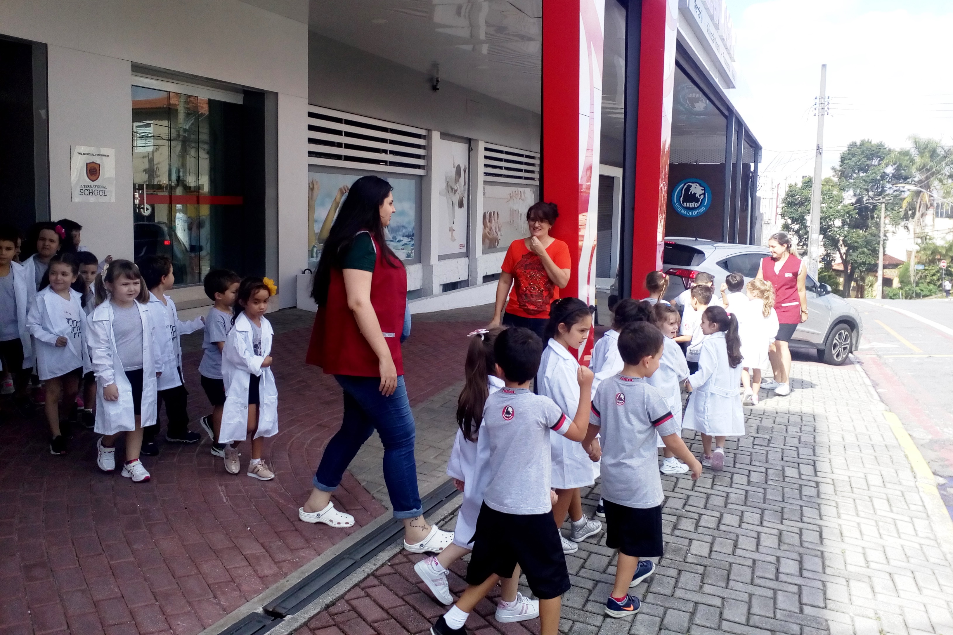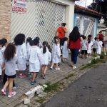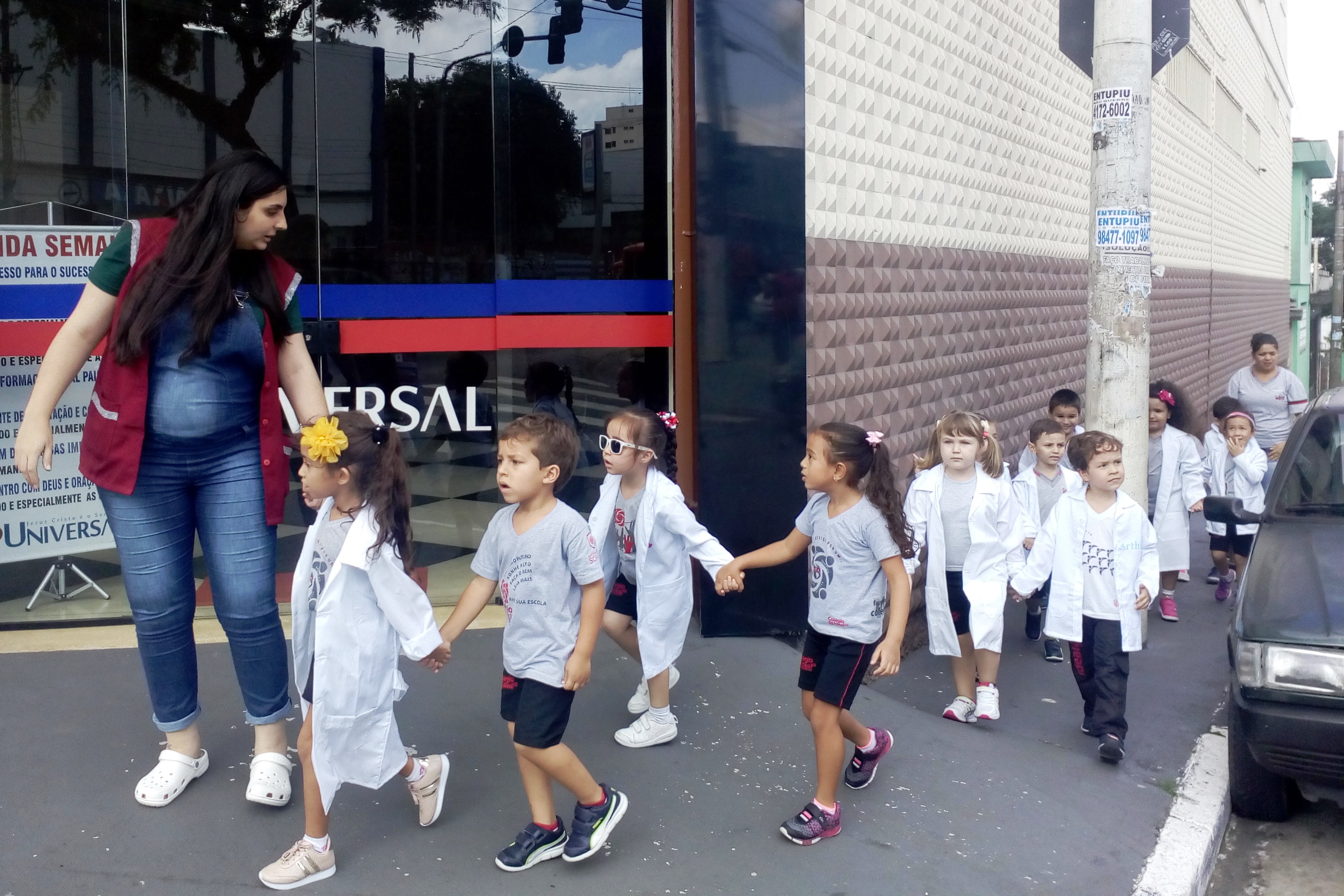 Os alunos do Infantil III passearam pelas ruas próximas ao colégio para vivenciar o conteúdo ensinado em sala de aula sobre os bairros, ruas, casas, placas, mosaicos, entre outros. Foi uma experiência diferente e divertida para as crianças, que puderam se familiarizar com esses elementos abordados na apostila de forma prática.