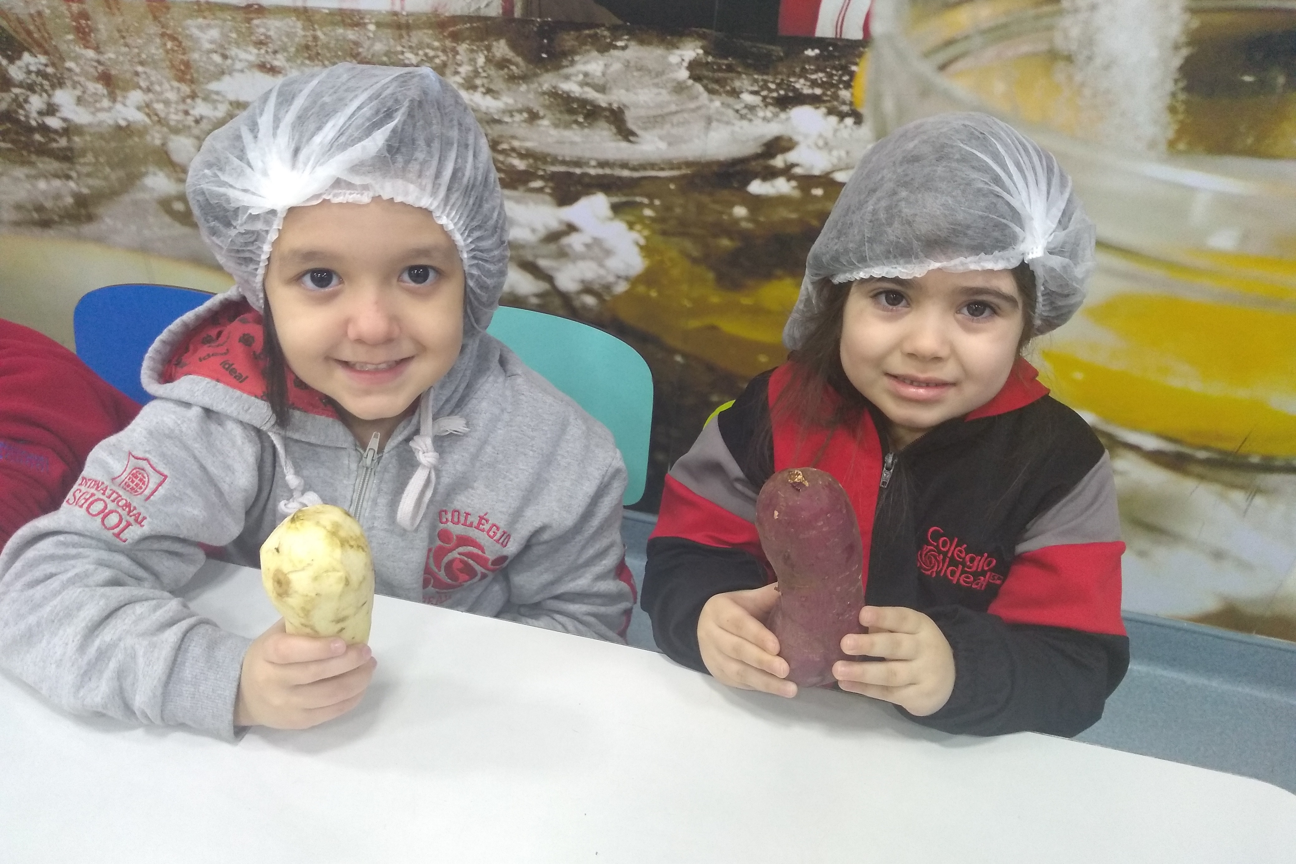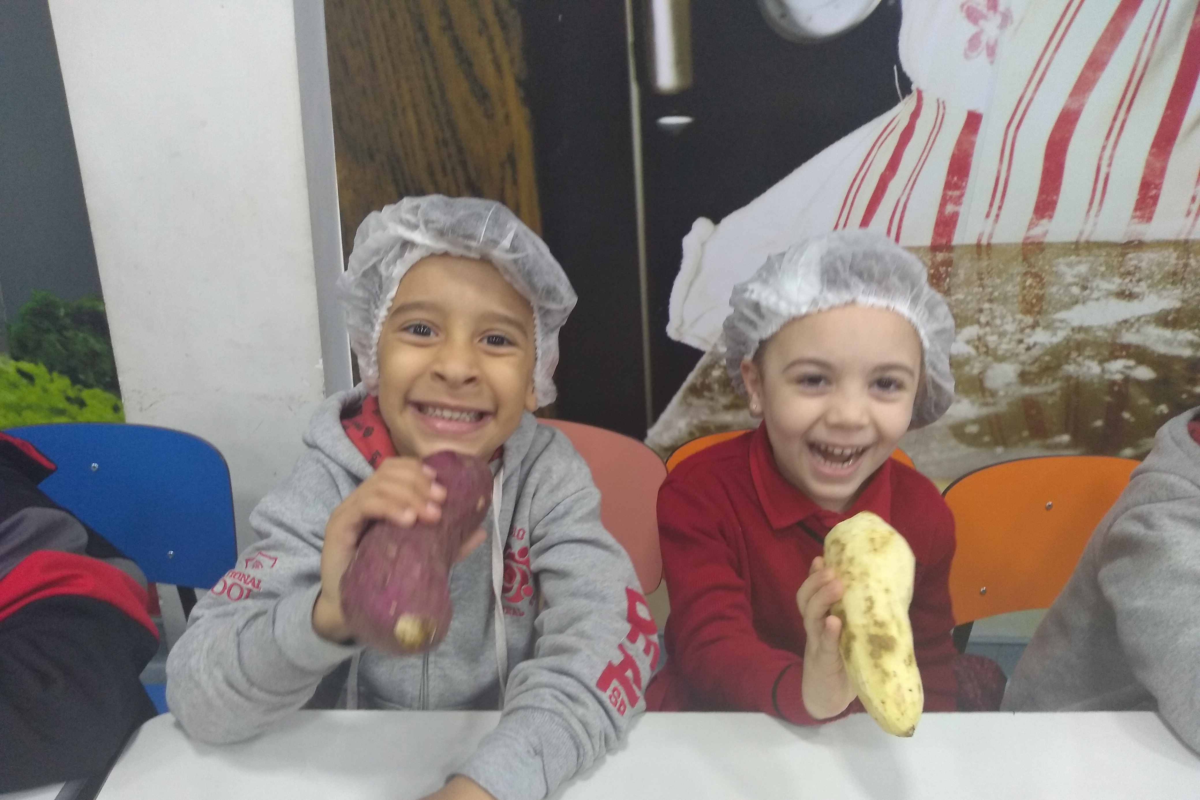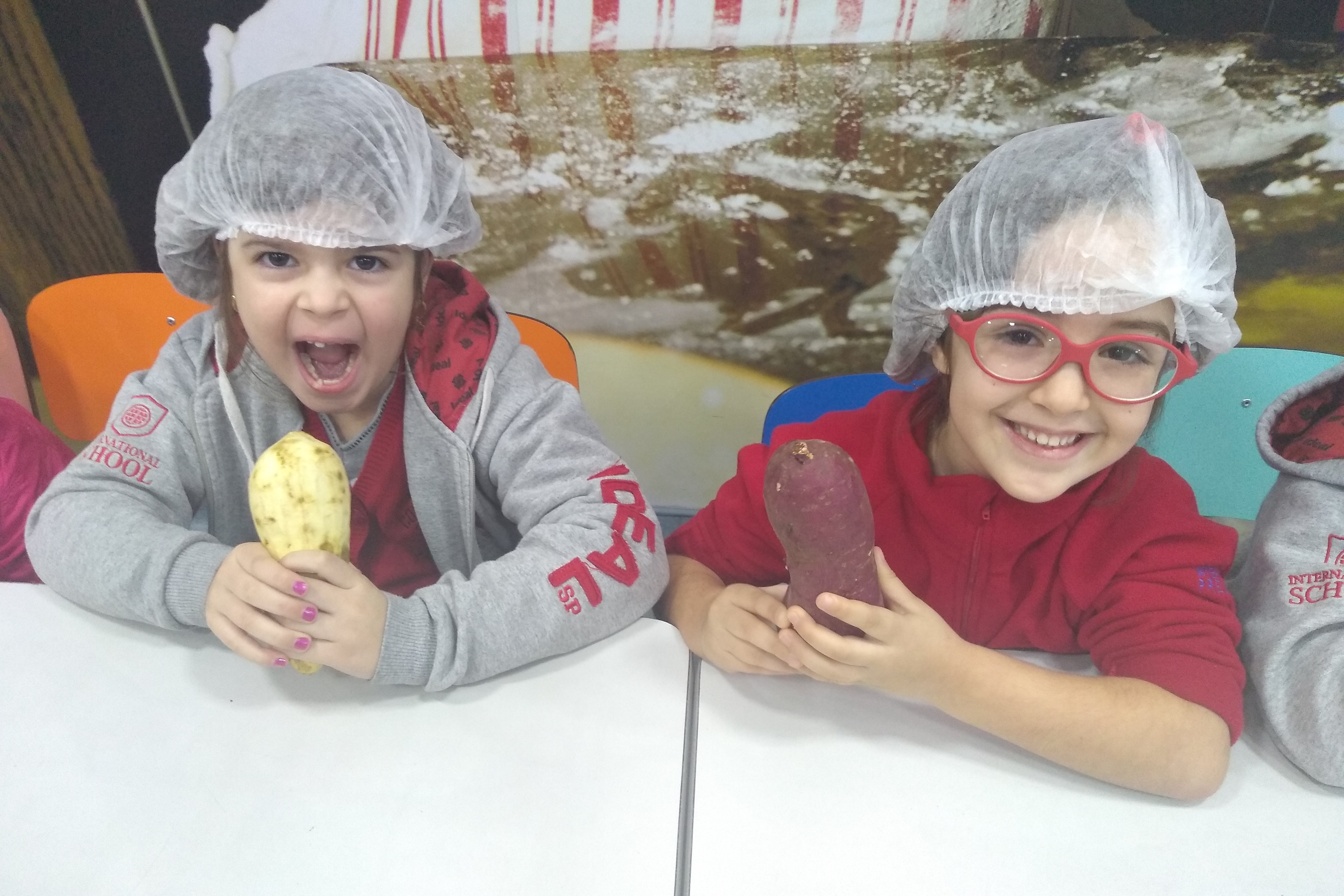 Os alunos do Infantil VI A aprenderam sobre alimentos muito antigos e suas características. Um dos acontecimentos mais significativos para a história da humanidade foi o domínio do fogo. Na mitologia de vários povos, o domínio do fogo simboliza o início da cultura humana, porque mudou a maneira de as pessoas se relacionarem. As categorias dos alimentos crus e cozidos são marcos que distinguem natureza e cultura, coleta e cozinha, alimentação animal e alimentação cultural. O domínio do fogo aumentou a variedade de alimentos (com o cozimento de vegetais e carnes). No entanto, a consequência mais transformadora tenha sido o estabelecimento de um lugar de compartilhamentos entre os humanos: em torno da fogueira, as pessoas puderam descansar, cozinhar e saborear sua caça, reconhecer-se fraternas e trocar experiências. Para concluir essa experiência fantástica, os alunos conheceram, assaram e experimentaram a batata doce.