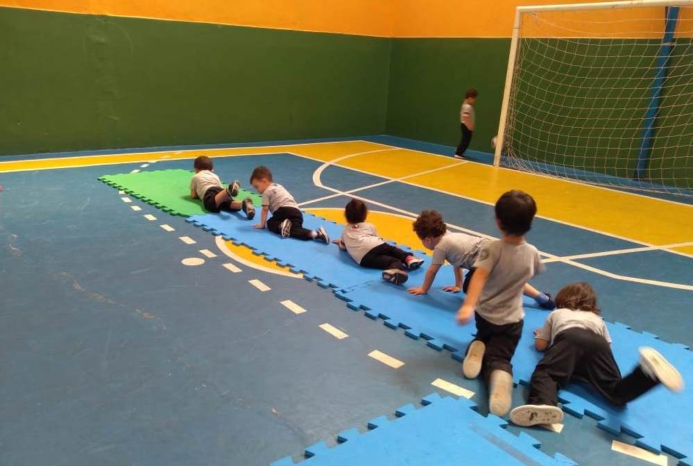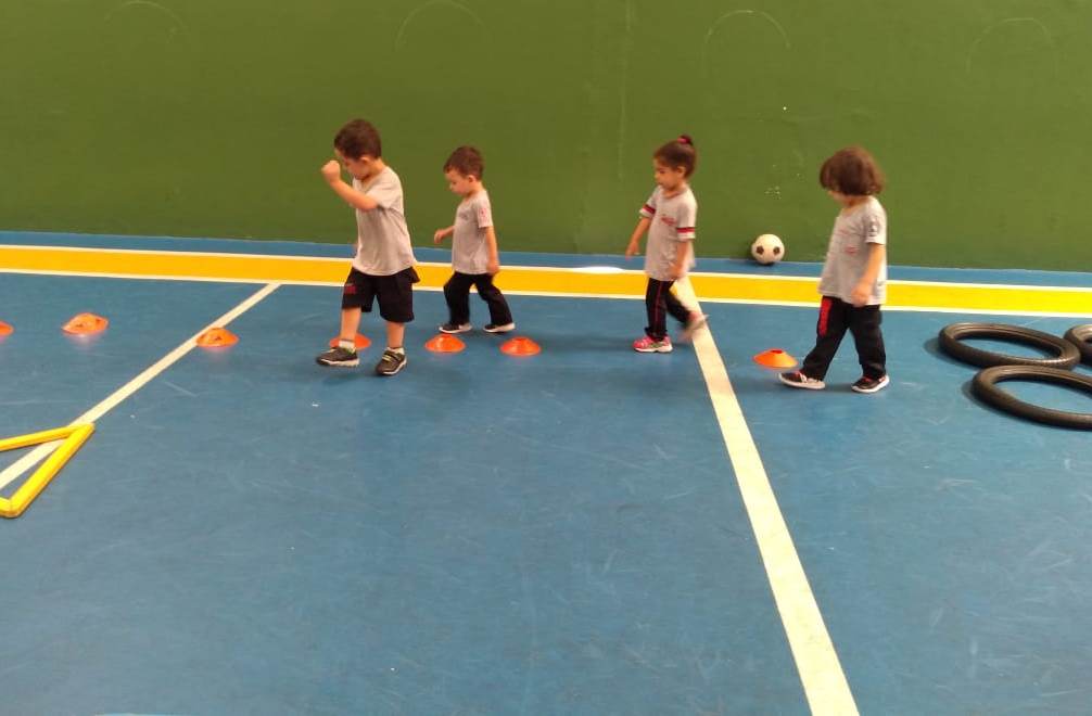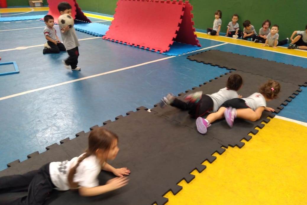 Cada criança é desafiada a evoluir testando suas próprias habilidades, promovendo também a percepção corporal em relação as suas capacidades de movimento.